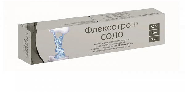 Флексотрон Соло средство для внутрисуставного введения шприц 22мг/мл, 2,2% 3,0мл шприц 1шт в наличии. Узнайте, как купить товар с бесплатной доставкой в Балашиху Московской области на странице «